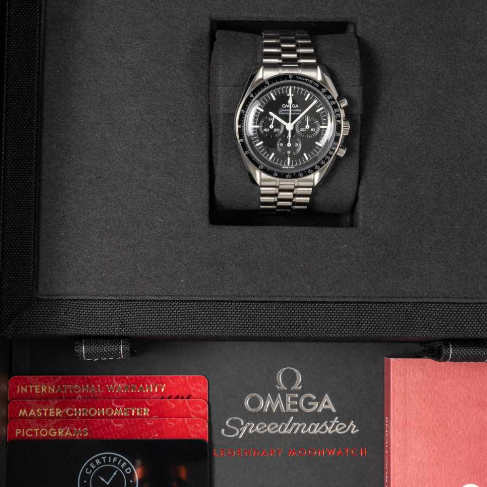 The legendary Moonwatch with Hesalite crystal. Timeless chronograph icon.