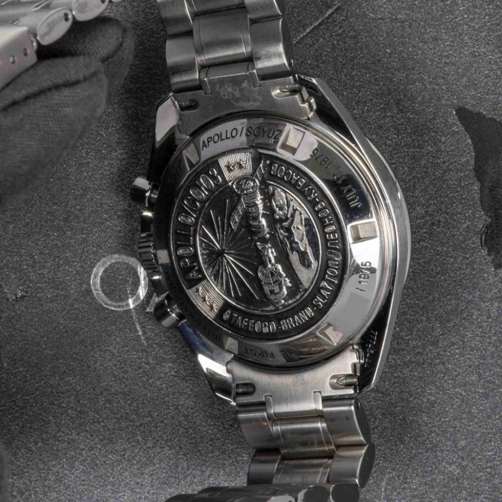 Historic Speedmaster commemorating the Apollo-Soyuz mission. Rare, collectible, and unmistakably iconic.