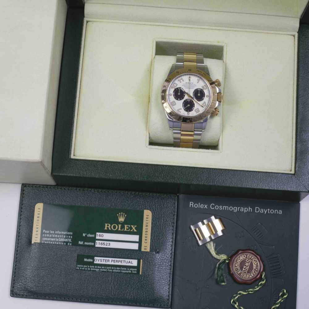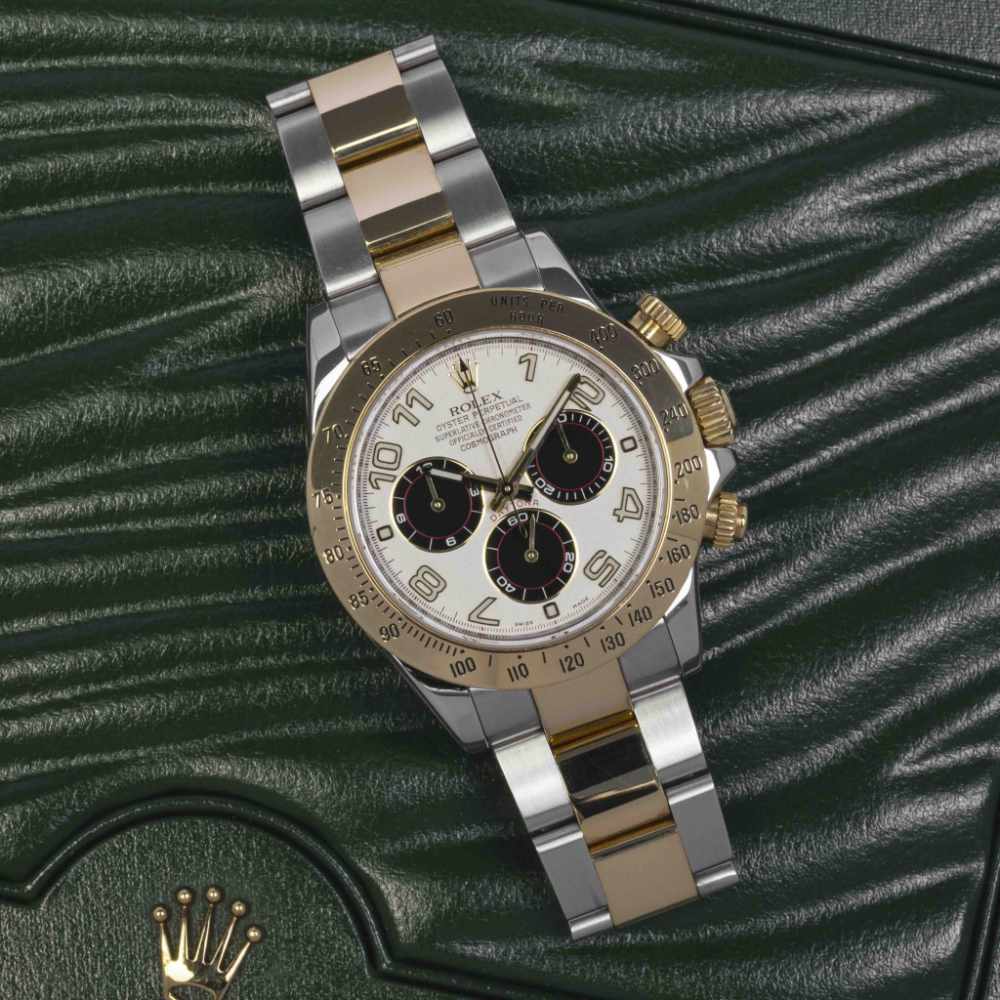 Two-tone Daytona chronograph combining sporty performance with classic elegance.