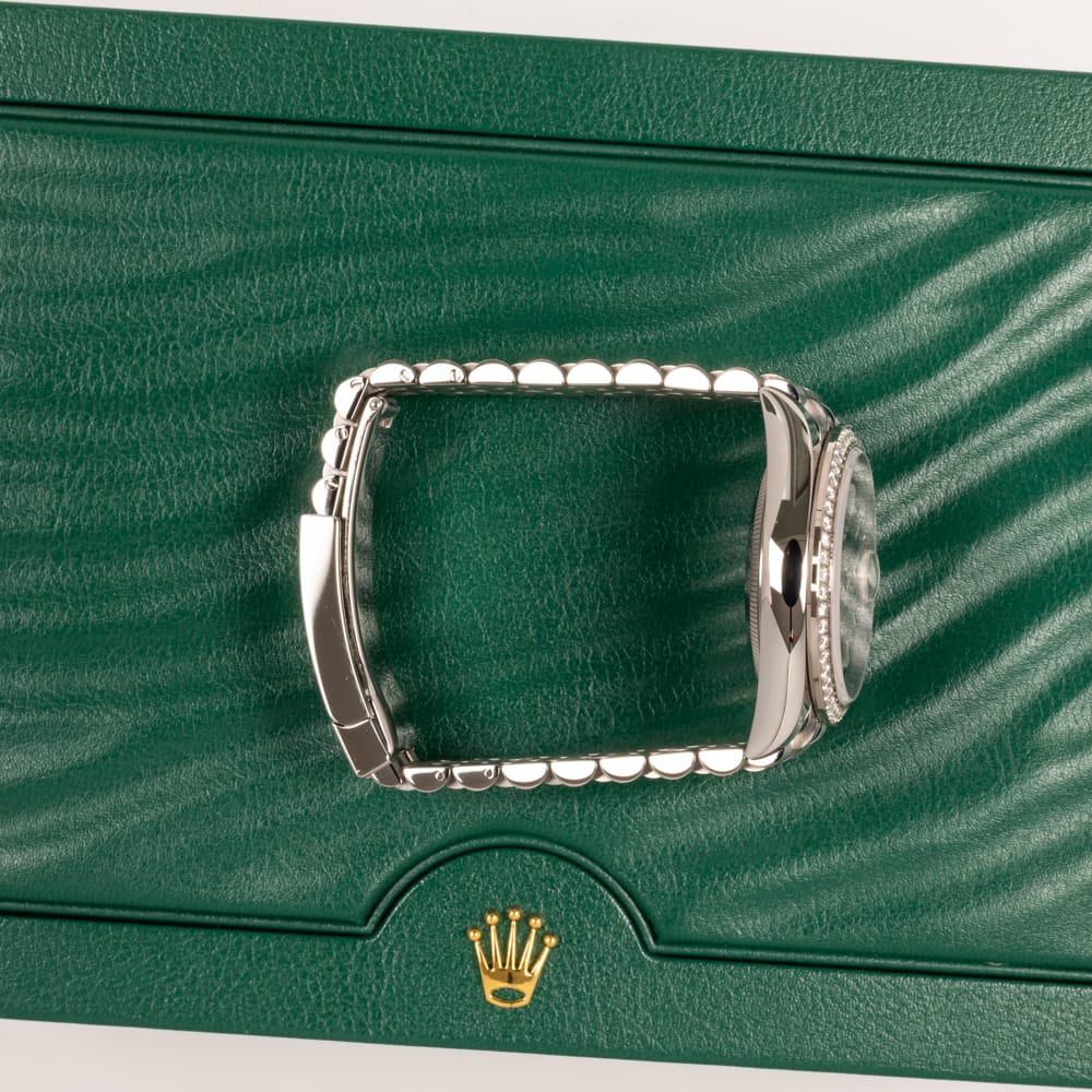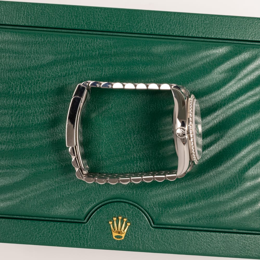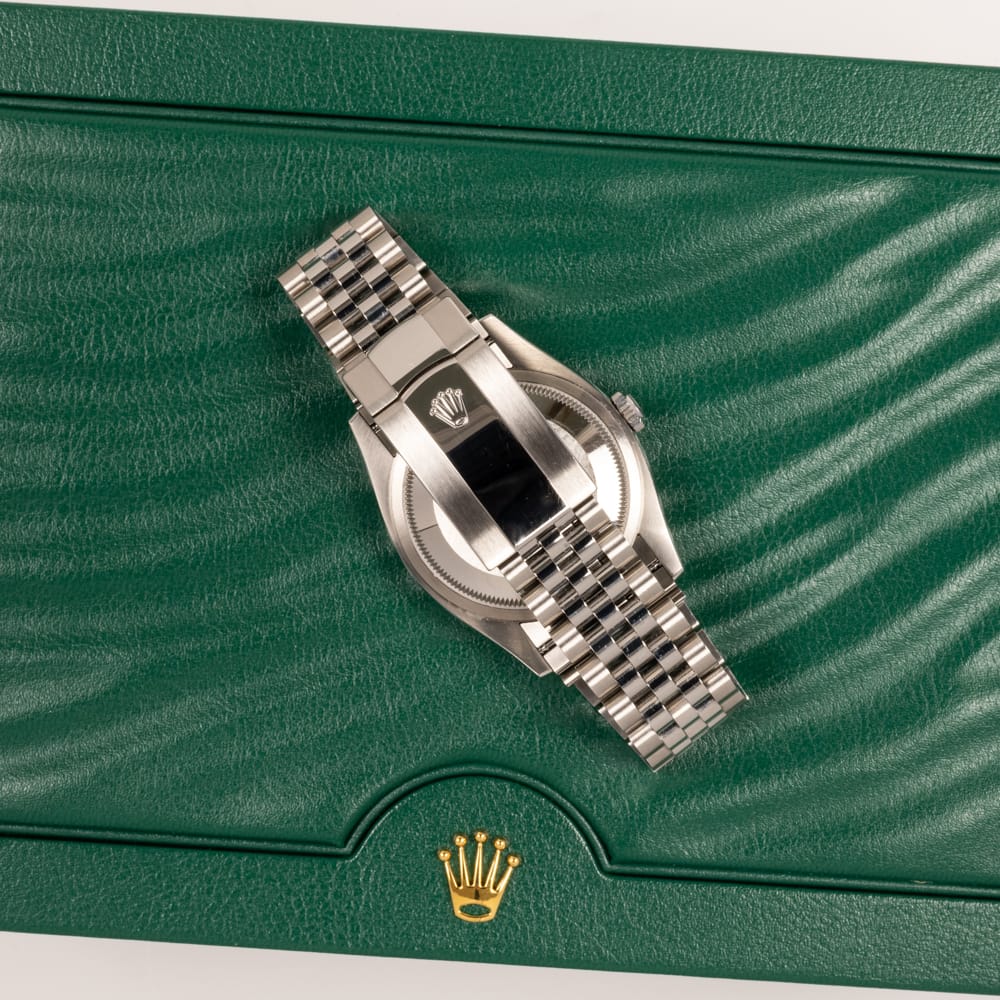Rolex Datejust 36 126284RBR stands out with its rare blue motif dial, factory diamond bezel and modern calibre 3235 movement — a distinctive twist on a timeless classic.