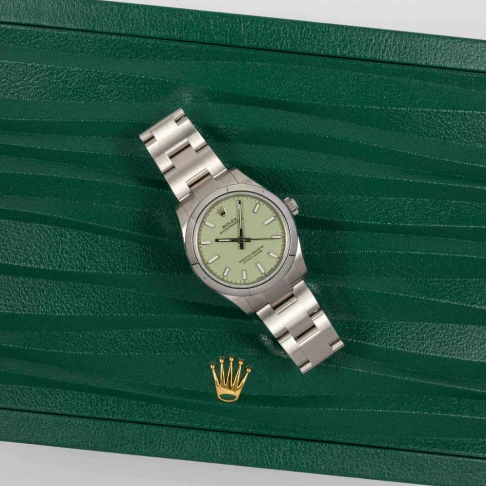 Refined 31mm Oyster Perpetual with timeless design and everyday versatility.